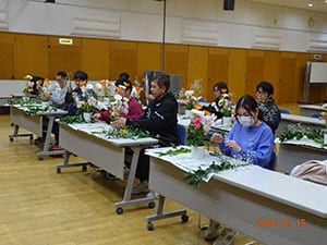 今年度最後の活動は、生花店の方を講師にお招きしフラワーアレンジメントを行いました。